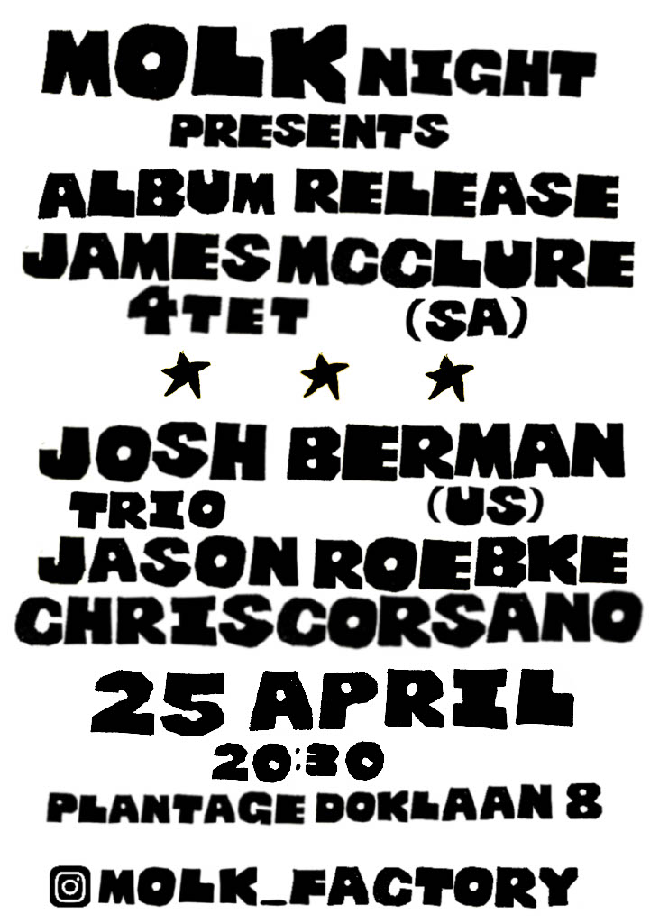 We will celebrate a special evening with the release of James McClure's debut album 'A dizziness from the unsaid' (MOLK records), as well as the outstanding Josh Berman Trio, who we are very lucky to have on their tour all the way from Chicago.